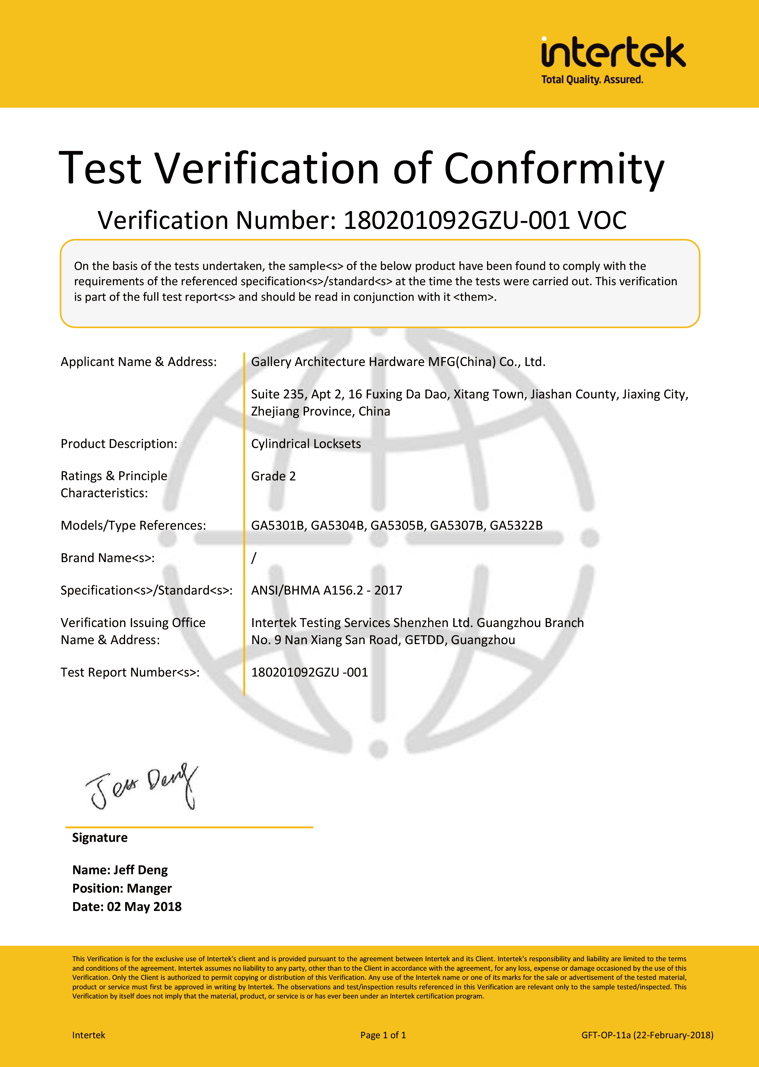 浙江堅(jiān)迪五金制造有限公司始建于 1995 年。自 2003 開始,公司致力于高標(biāo)準(zhǔn)商業(yè)鎖的研發(fā)工作,并于 2006 及 2007 年,8700 插芯鎖系列獲得美國(guó)國(guó)家標(biāo)準(zhǔn) ANSI A 156.13-2005 一級(jí)、ANSI A 156.2-2003 二級(jí)和美國(guó) UL 10C3 小時(shí)防火測(cè)試認(rèn)證。自 1998 年以來(lái),公司不斷提升產(chǎn)品和客戶服務(wù)品質(zhì),并獲得了 ISO 9001 的認(rèn)證。